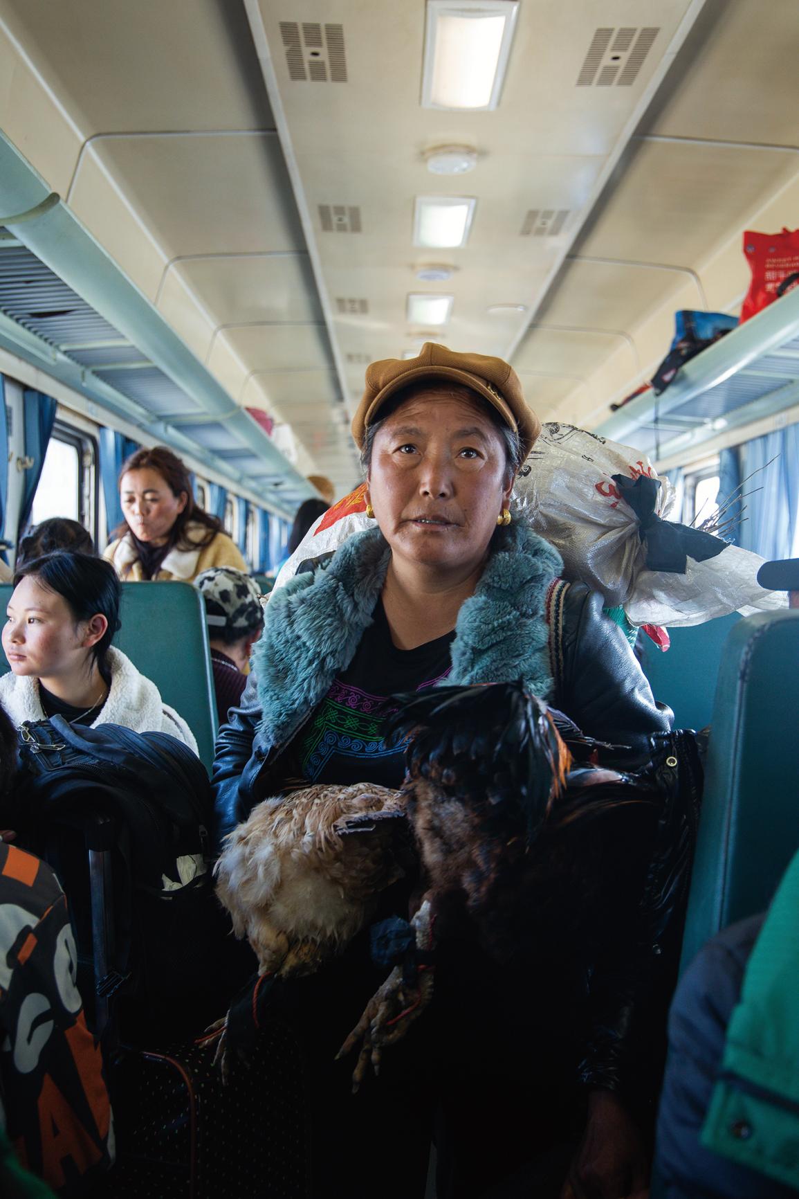 四川省凉山彝族自治州的5633次列车,为方便乘客外出售卖山货,允许乘客携带家禽上车。