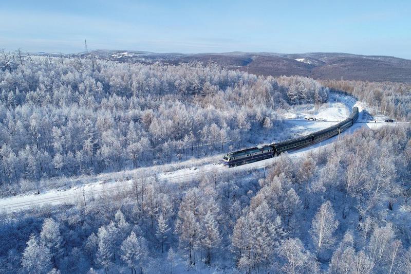 驶过大兴安岭林海雪原的绿皮火车。(图片来源:图虫)