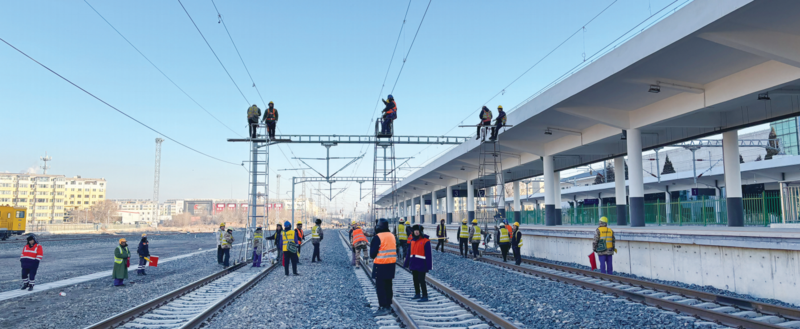 图为工程改造现场,工人加紧施工。中铁九局集团电务工程有限公司供图